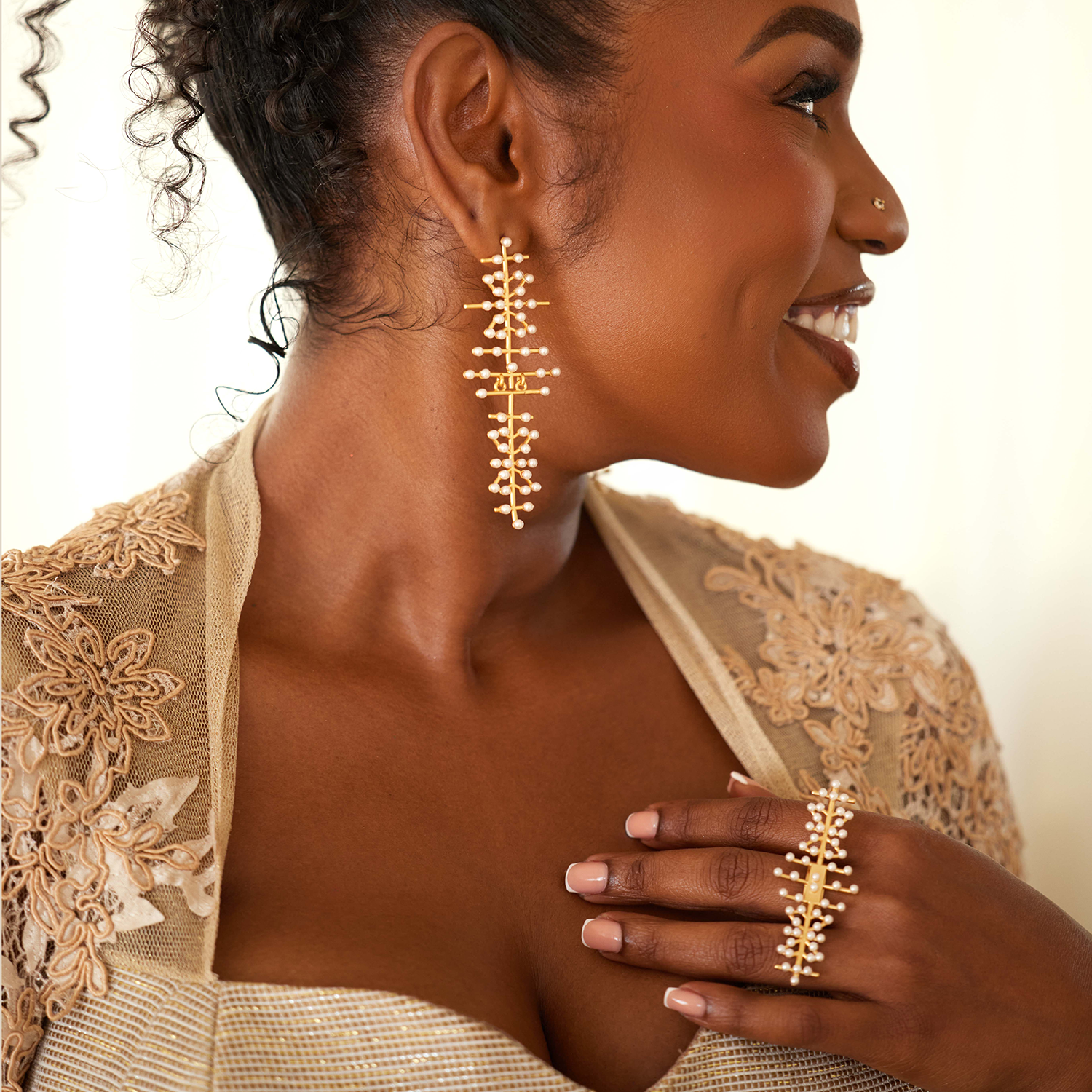 Adorn yourself in luminous whites, shimmering golds, and distinctive designs - rings, earrings, necklaces, and hair accessories that shine as brightly as your smile.